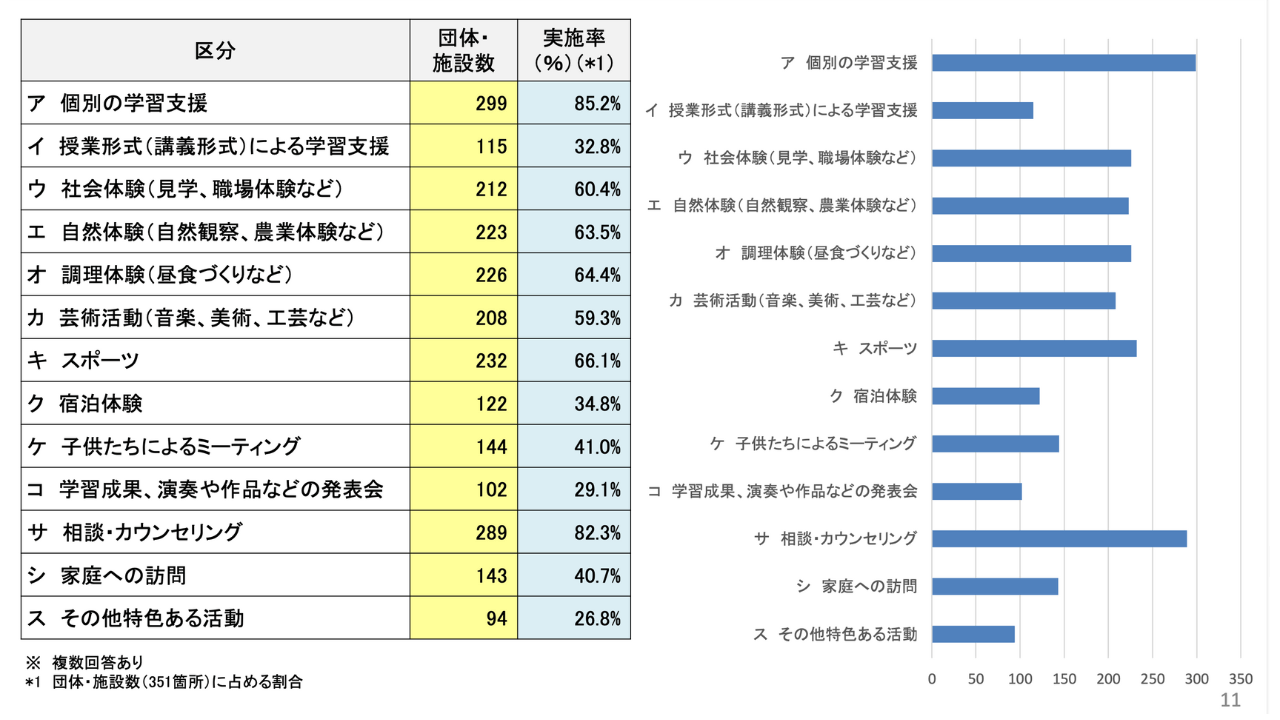 - 学習支援を行っている団体・施設は約85%