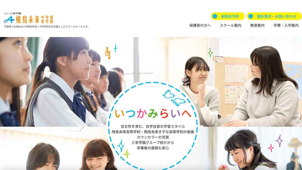 ![]() ![]() 飛鳥未来中等部ネットコース | 子どものレベル・目的に合わせた指導。手厚いサポート体制あり。学校に近い環境で学べる。 |