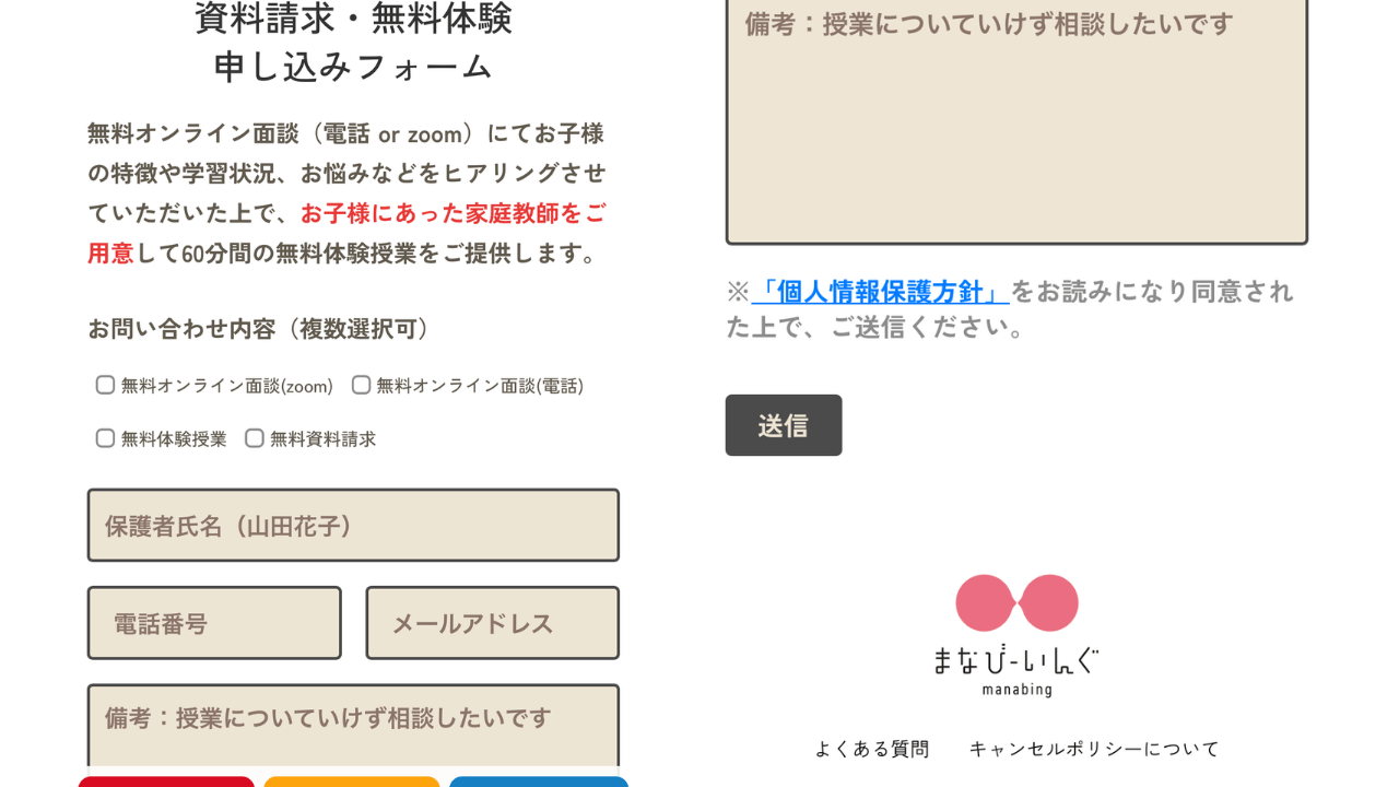 | 対象地域 | 対面指導は東京/神奈川/千葉/埼玉/栃木/愛知/岐阜/三重 対象地域はこちら |