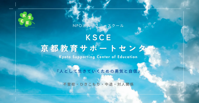 NPO法人京都教育サポートセンター(KSCE)は、学校や社会になじみにくい青年たちが、様々な経験を通して生きていく勇気と自信を培うためのフリースクールです。個別指導学習サポート・居場所提供・レクリエーションイベント・社会活動・家庭訪問・家庭教師・各種相談・心理相談などを40歳くらいまでの方を対象に実施しています。