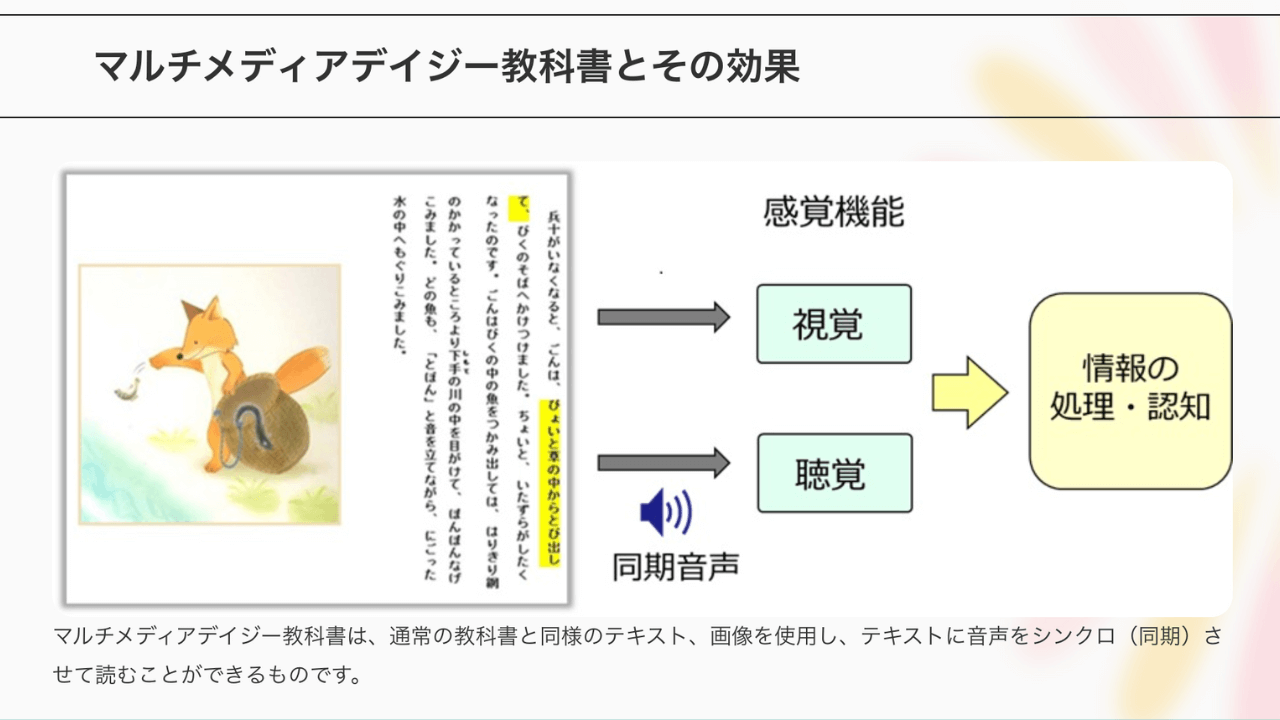 例:読字障害には音声読み上げ、書字障害にはデジタルツール、算数障害には具体物の利用